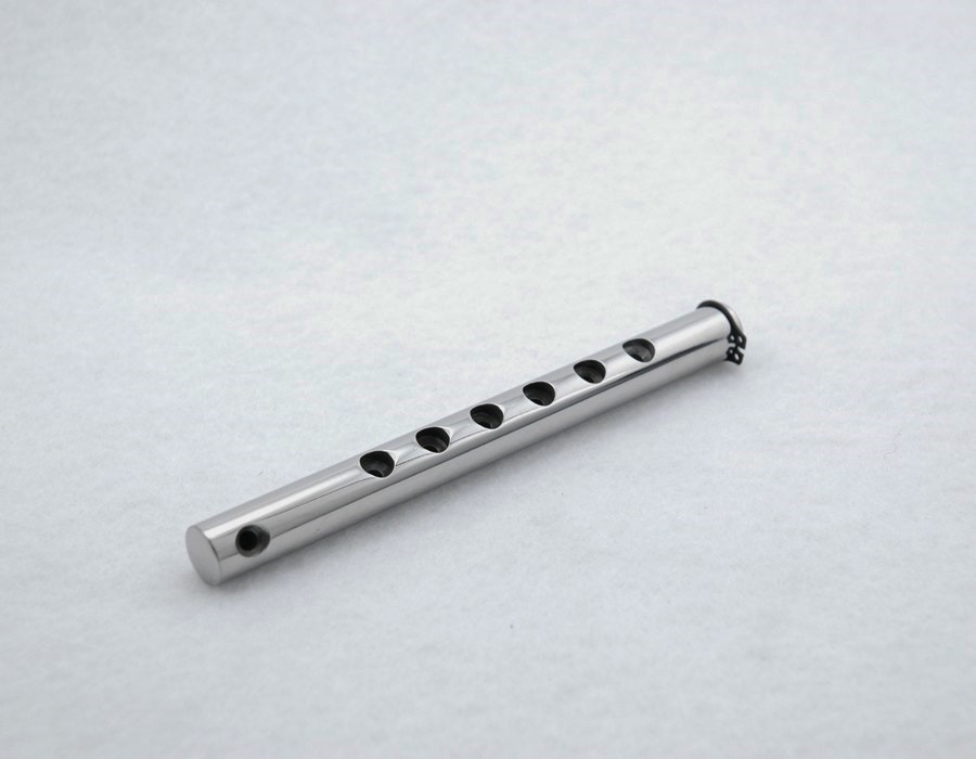 This upgrade eliminates the years of problems and frustration of a Bigsby Vibrato restringing. This again is a polished stainless steel shaft that is counterbored for the string ball ends. Thread the string through the hole and up to the tuner. Works for all models and comes with retaining clip.