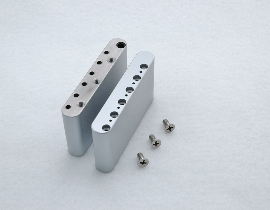 All of our tremolo blocks are machined from cold rolled non-leaded U.S. steel and are threaded for 10-32 english threaded arms. Includes: