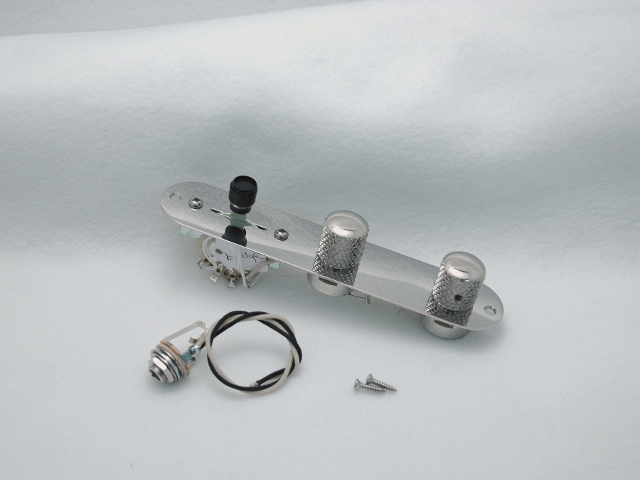 A fully assembled and wired control plate using the best electronic components available, and our handcrafted hardware. Our control plate allows for full access to the switch lever which traditional control plates hinder. The heavy knurled knobs guarantee positive grip for sweaty fingers for swells.